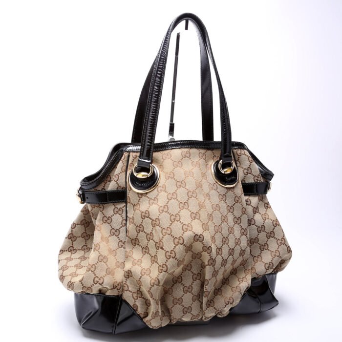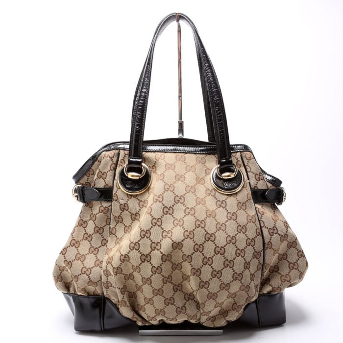 This pre-owned Gucci Full Moon Canvas Satchel is guaranteed 100% authentic.
