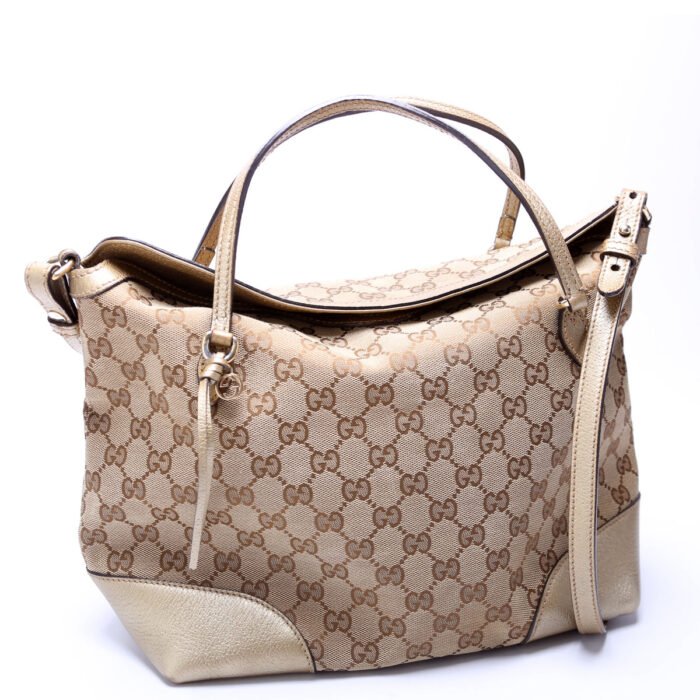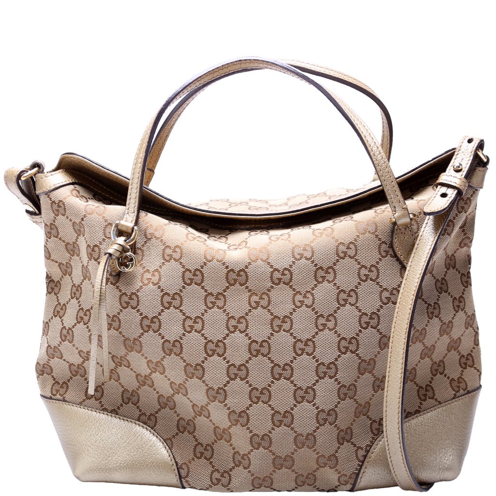 This pre-owned Gucci Bree GG Canvas is guaranteed 100% authentic.