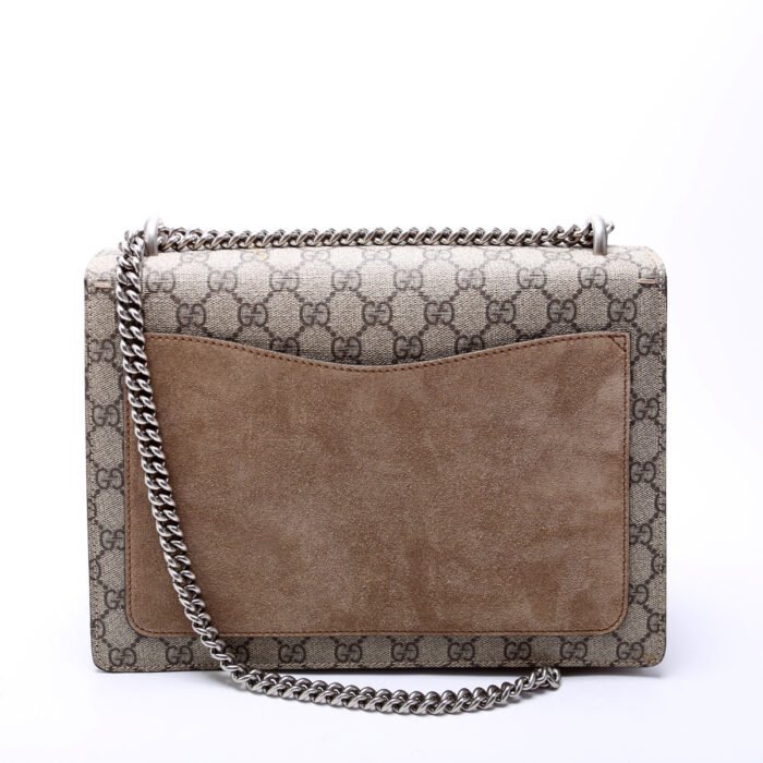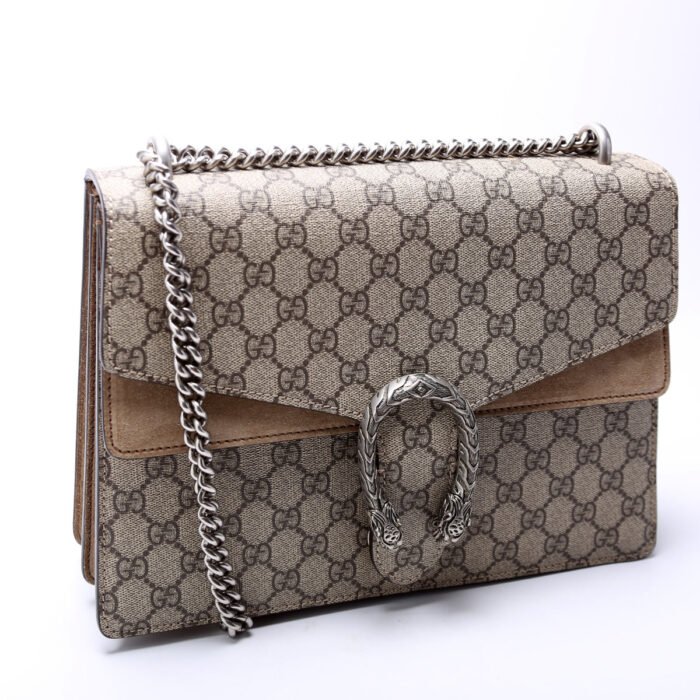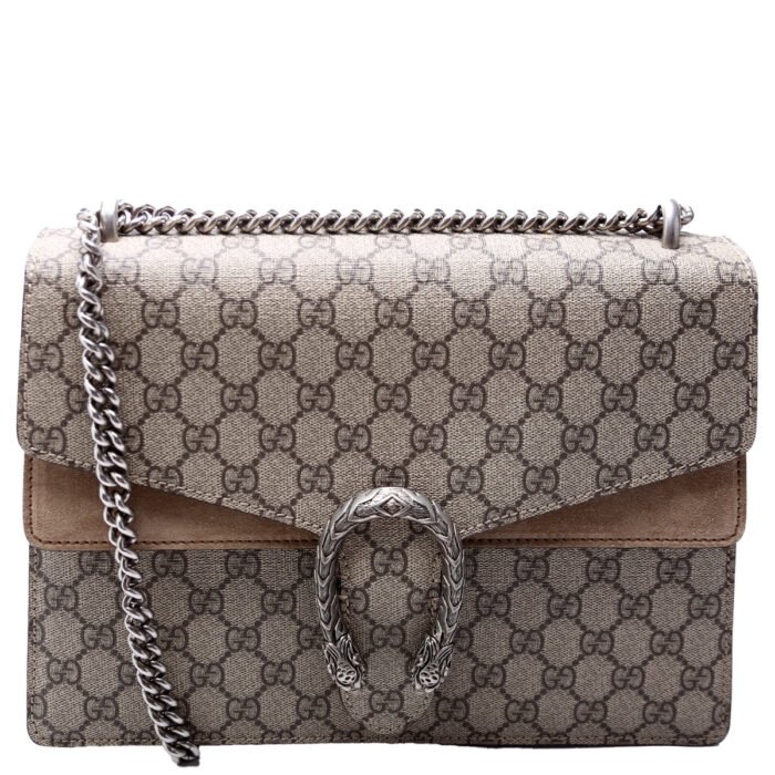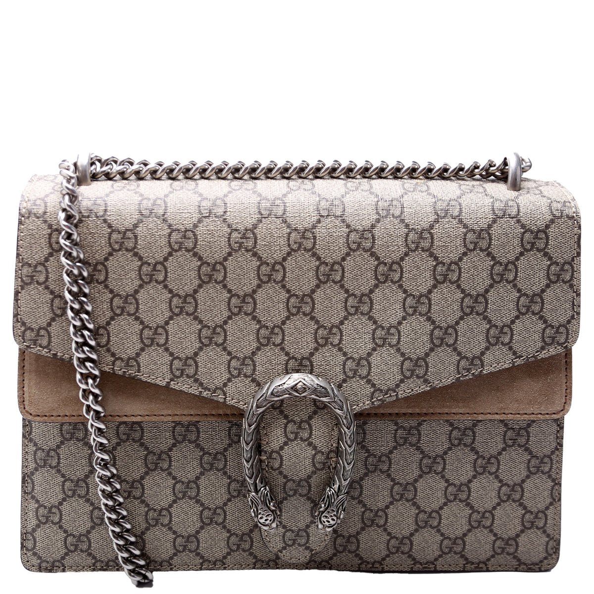 This pre-owned Gucci Dionysus Shoulder Medium is guaranteed 100% authentic. The exterior is in the classic Gucci GG Supreme Coated Canvas.