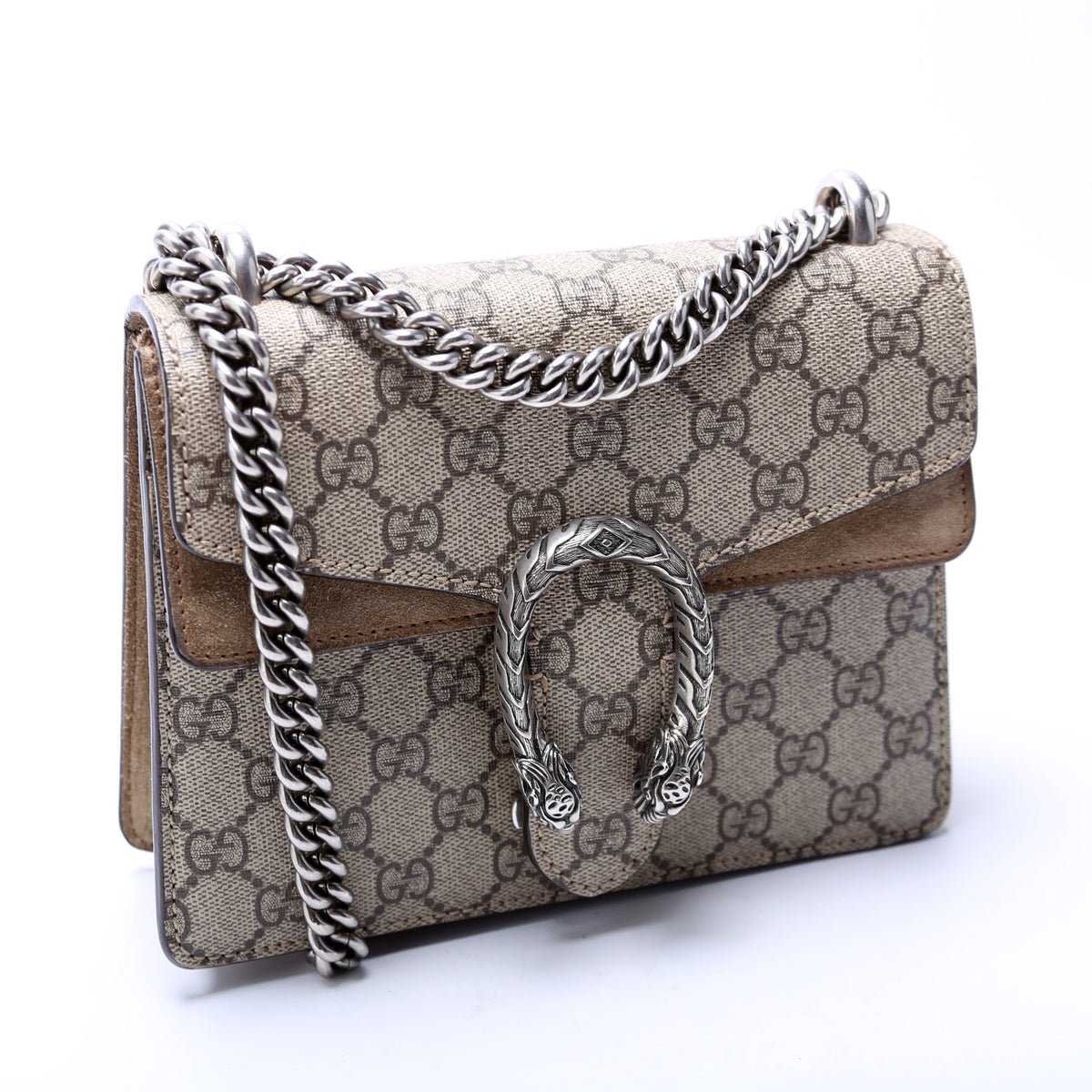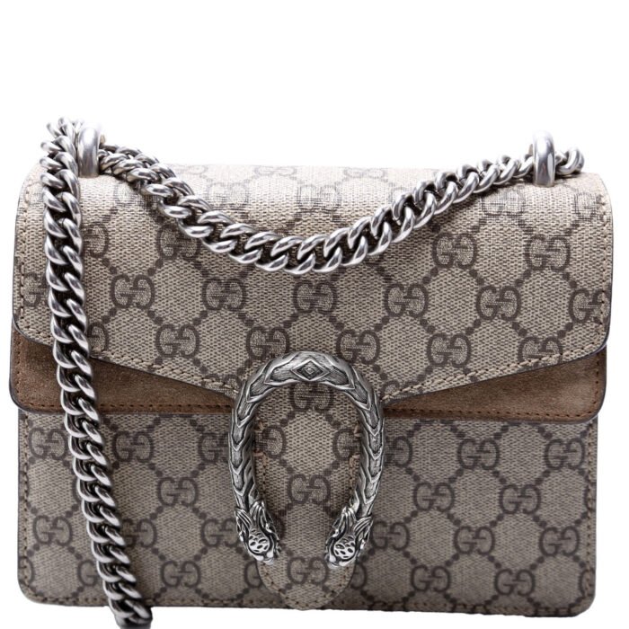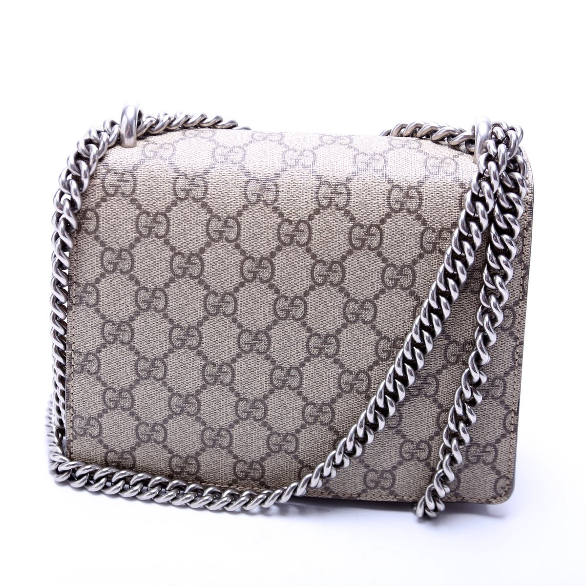 This pre-owned Gucci Dionysus Shoulder Mini is guaranteed 100% authentic. The exterior is in the classic GG Supreme coated canvas.