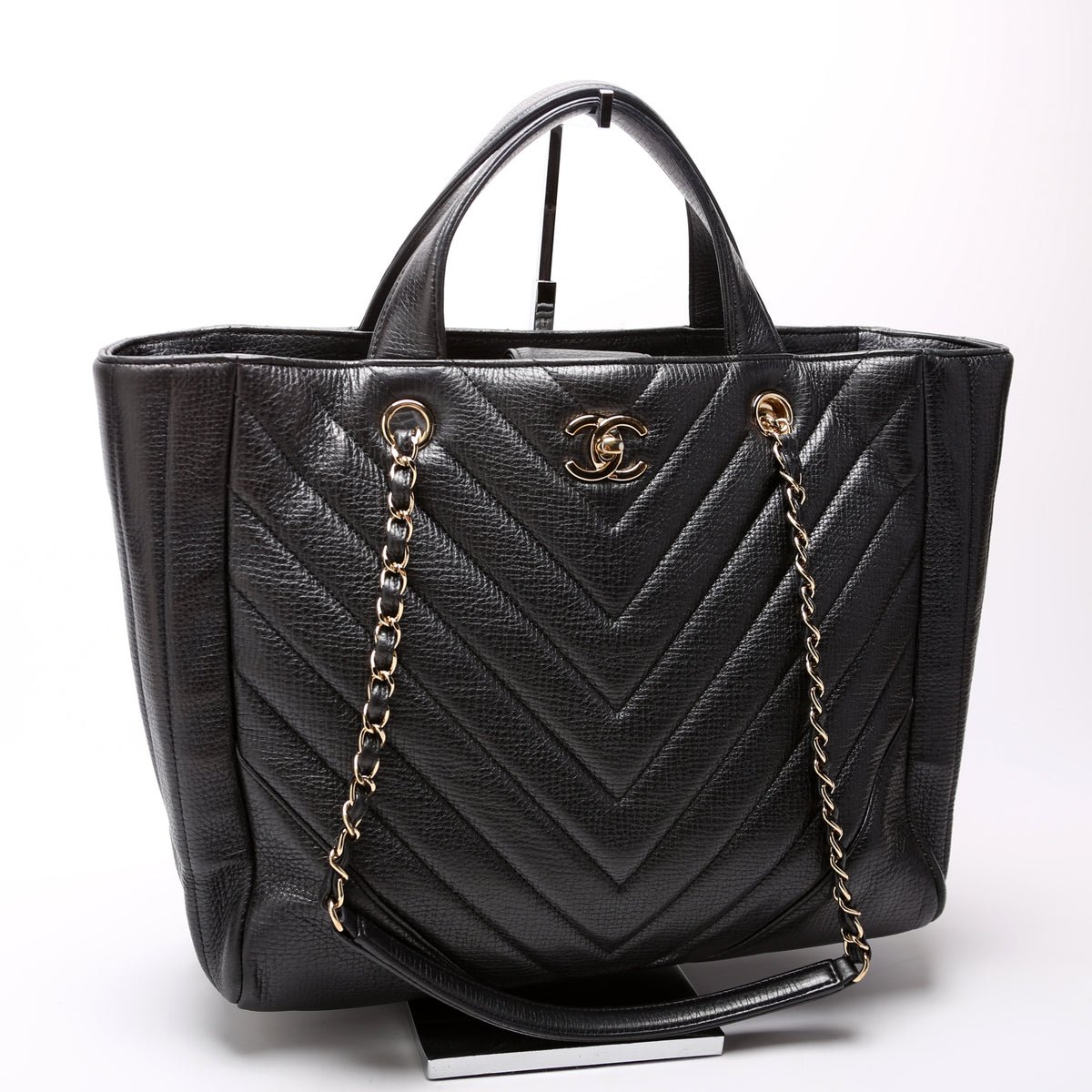 This pre-owned Chanel Chevron Statement Tote is guaranteed 100% authentic.