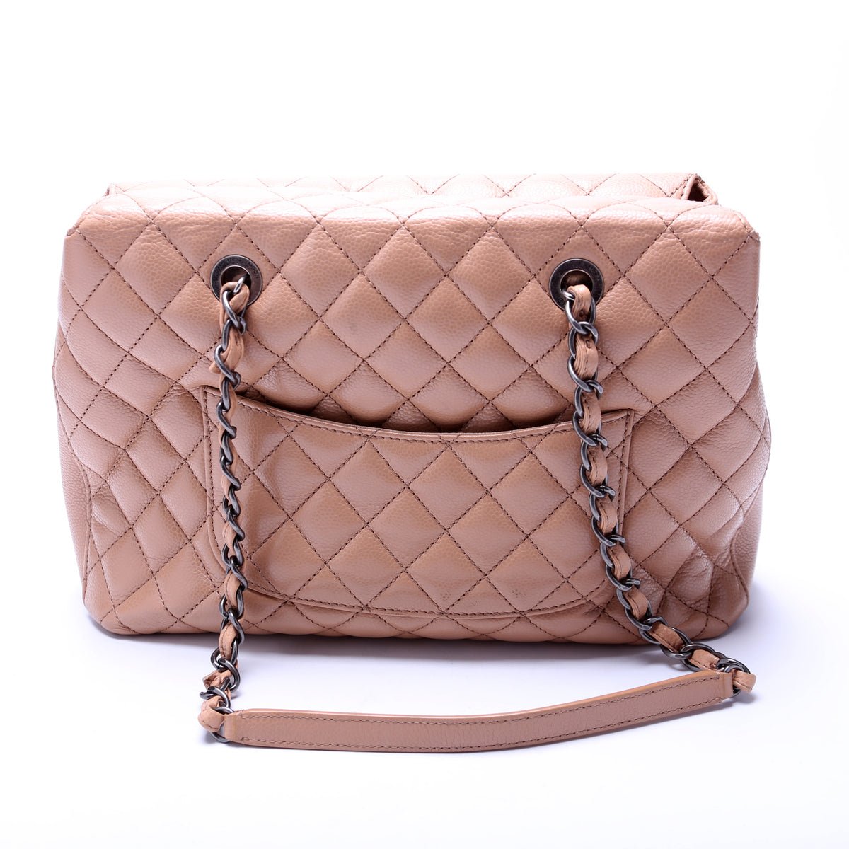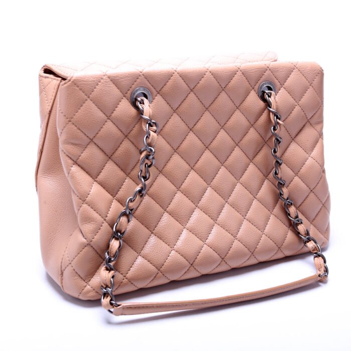 This pre-owned Chanel City Shopping Tote Large is guaranteed 100% authentic. The exterior is in the classic Chanel Caviar Leather.
