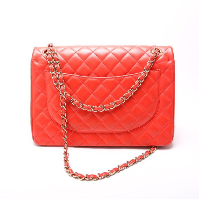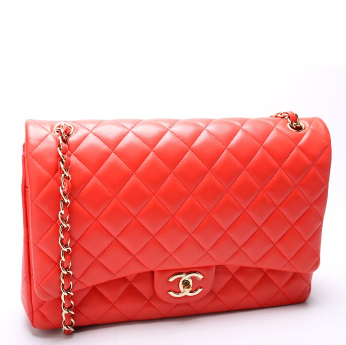 This pre-owned Chanel Classic Flap Max is guaranteed 100% authentic. The exterior is in the classic Chanel Lambskin leather.
