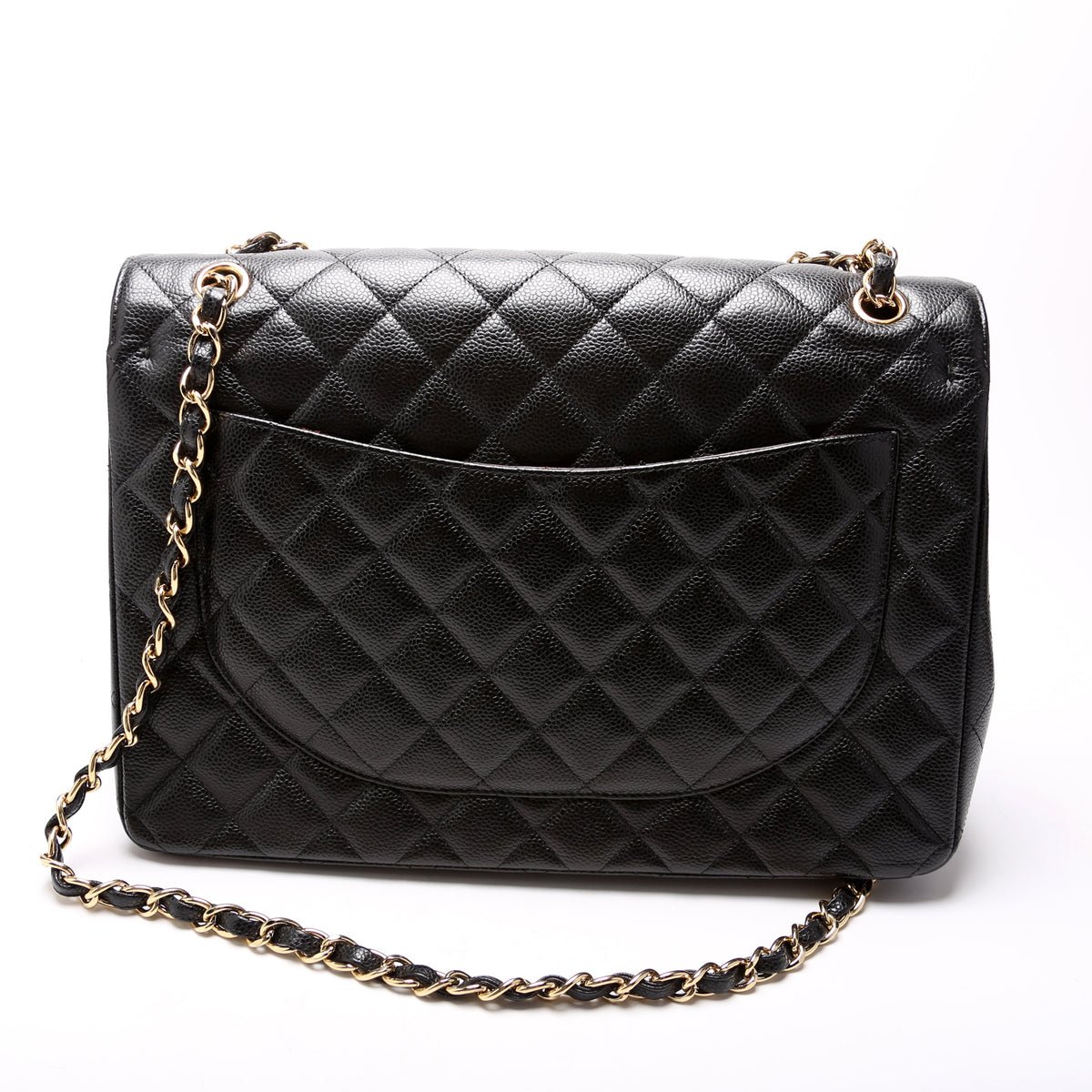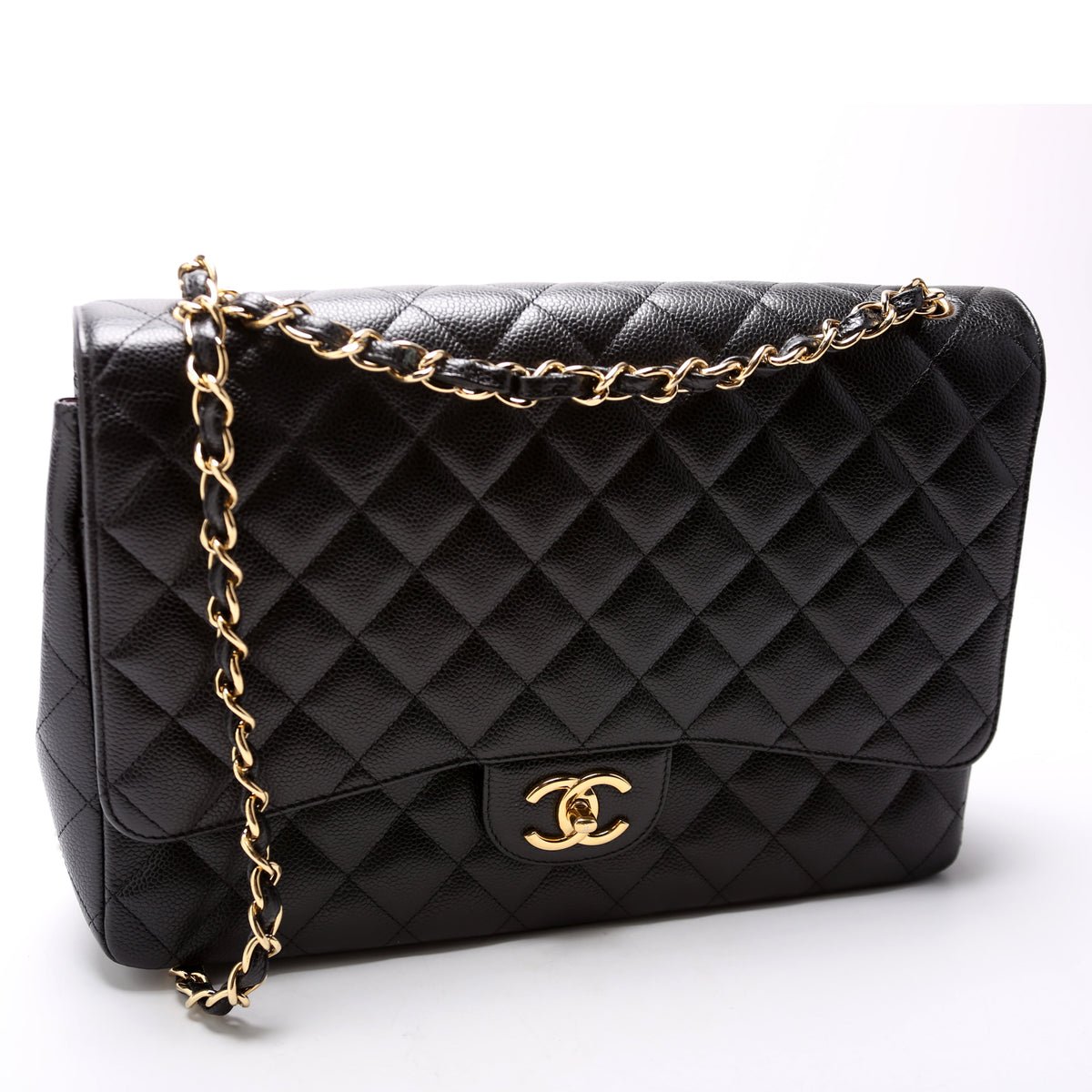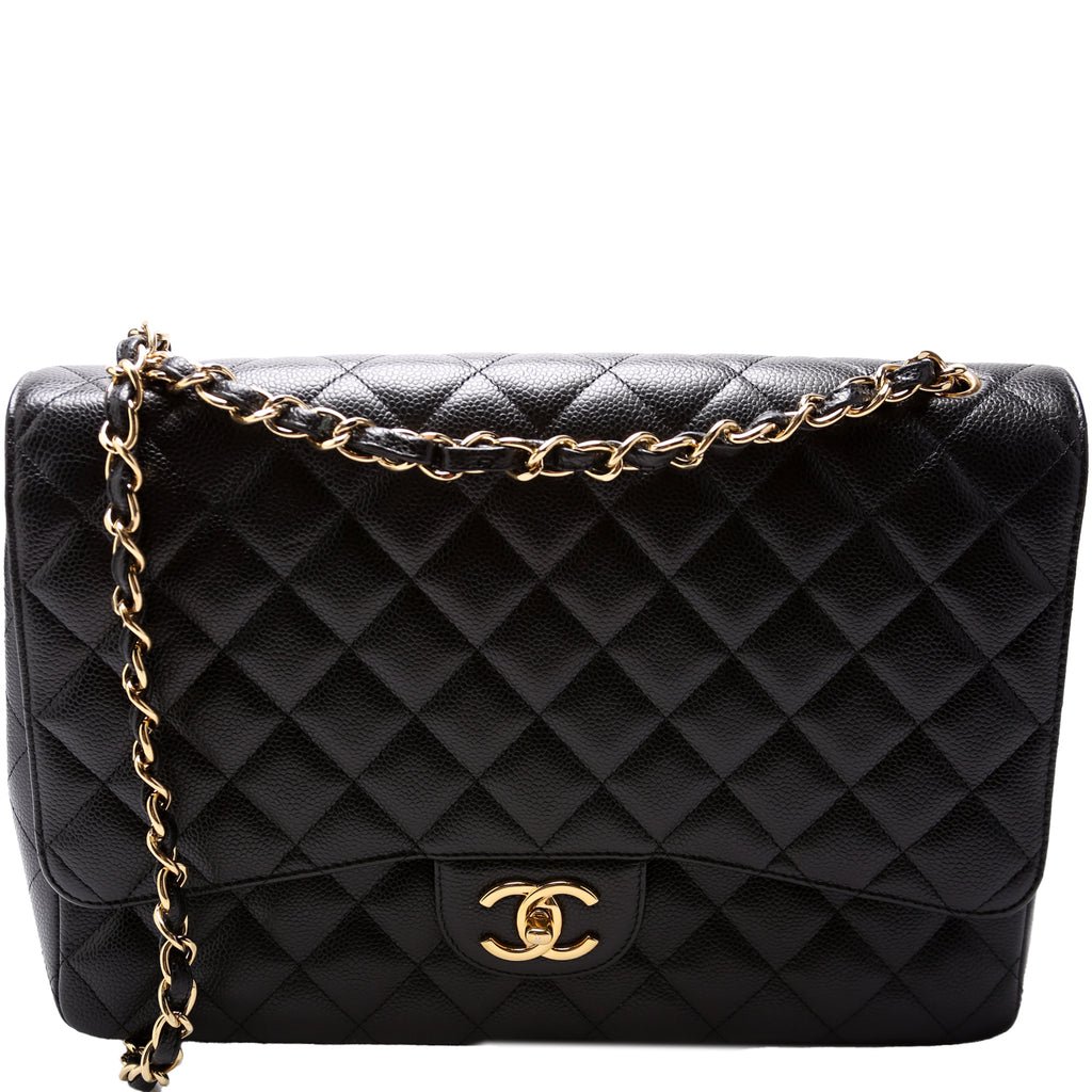 This pre-owned Chanel Classic Flap Maxi is guaranteed 100% authentic. The exterior is in the classic Chanel Caviar leather.