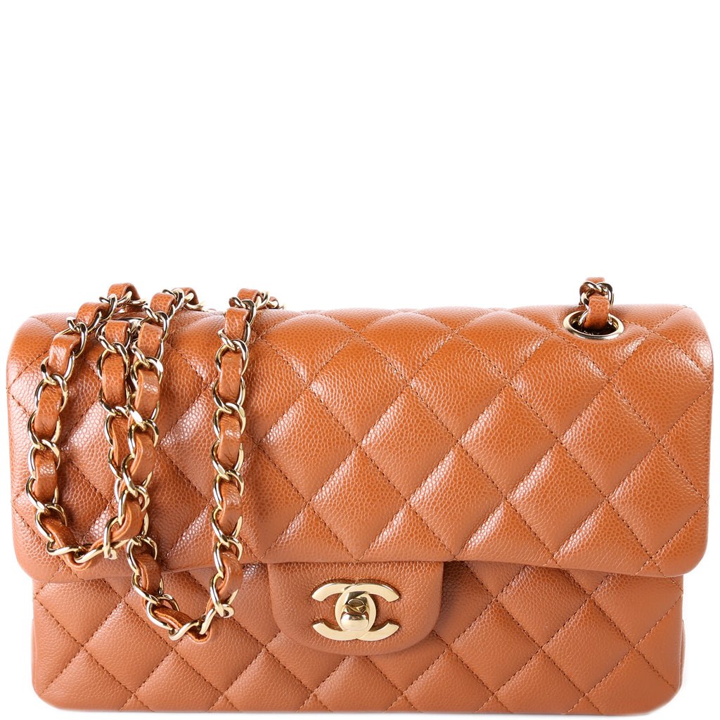This pre-owned Chanel Classic Flap Small is guaranteed 100% authentic. The exterior is in the classic Chanel Caviar leather.