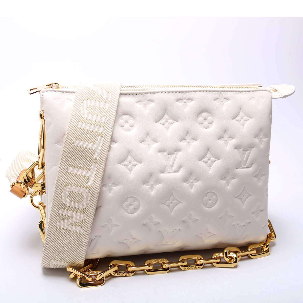 This pre-owned Louis Vuitton Coussin PM Lambskin is guaranteed 100% authentic.