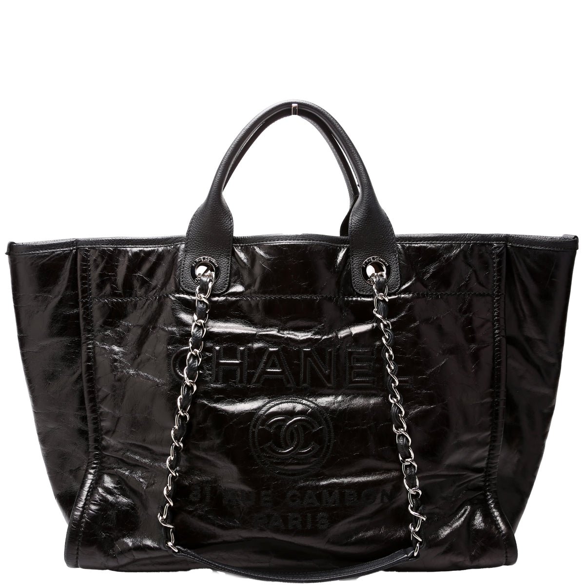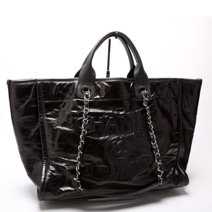 This pre-owned Chanel Deauville Glazed Calfskin Medium is guaranteed 100% authentic.