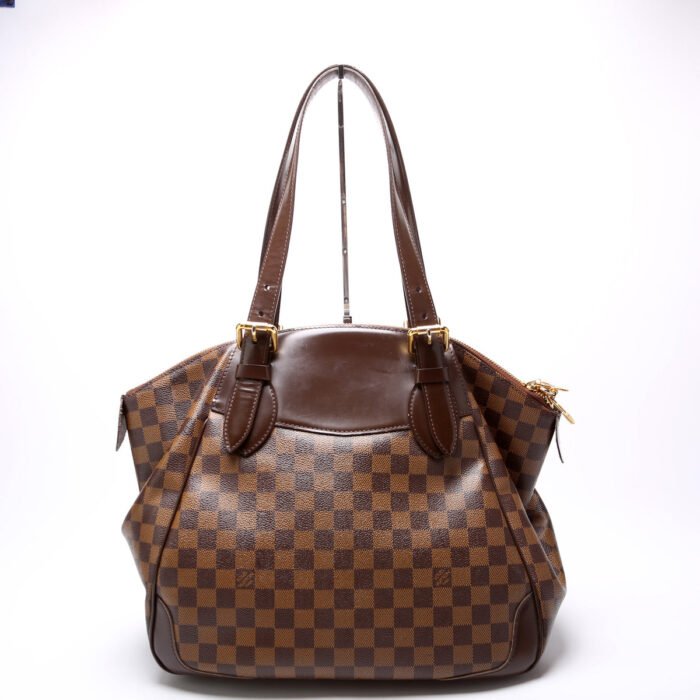This pre-owned Louis Vuitton Verona GM is guaranteed 100% authentic. The exterior is in the classic Louis Vuitton Damier Ebene coated canvas.